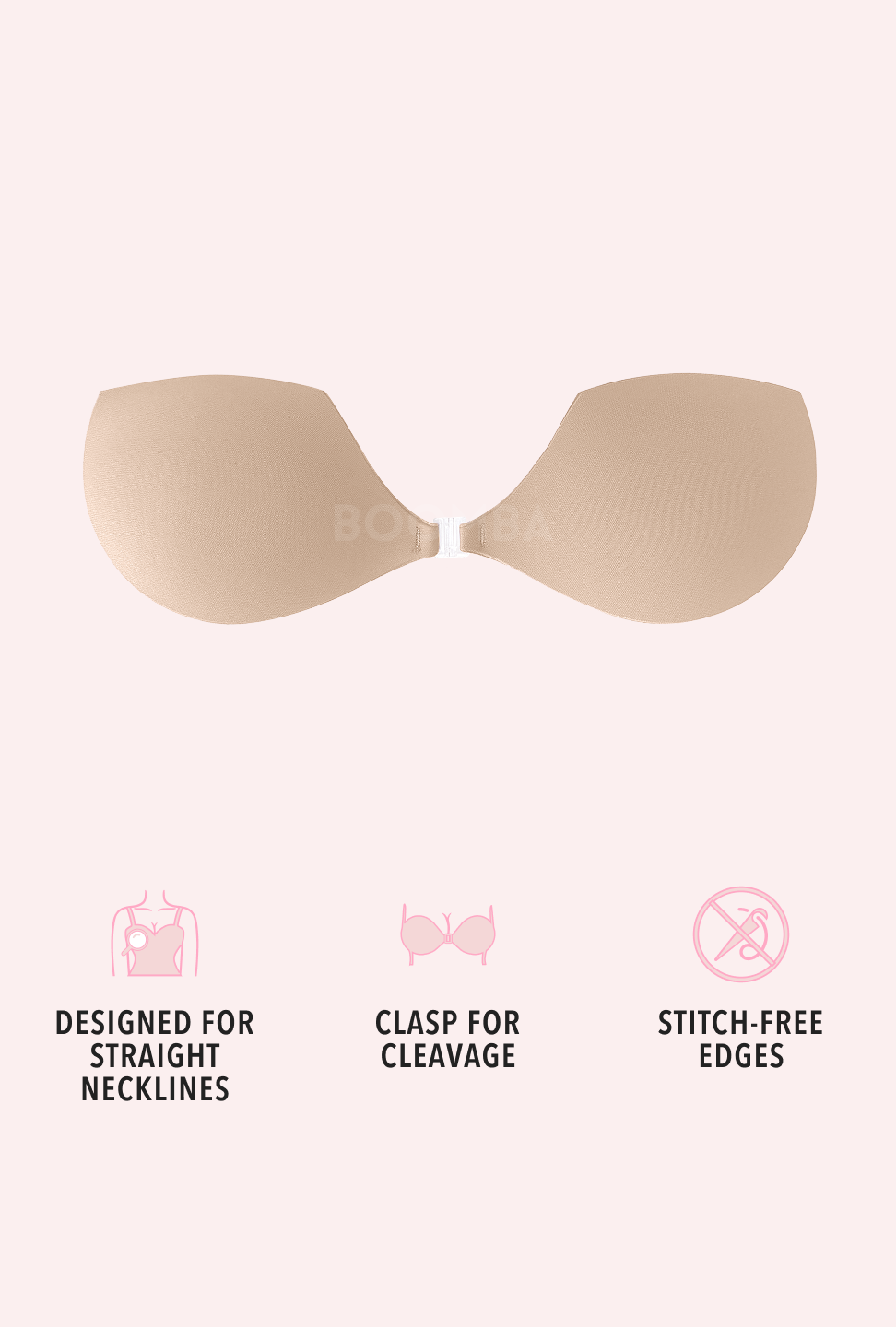 Instantly lift and boost 2 cups in sweetheart necklines.
