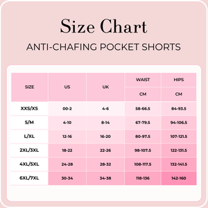 BOOMBA Anti-Chafing Pocket Shorts Size Guide
