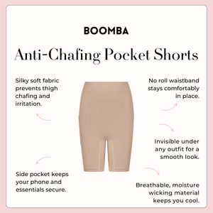 Thigh chafing has finally met its match. BOOMBA’s Anti-Chafing Pocket Shorts combine the comfort of our original design with a smart, built-in side pocket that keeps your essentials close and secure.