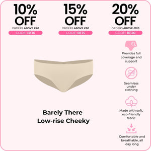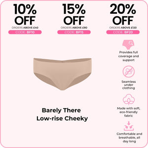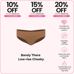 The BOOMBA Barely There Low-Rise Cheeky is like your best-kept secret—ultra-soft, seamless, and oh-so comfy! With a low-rise fit and breathable fabric, it stays invisible under clothes, giving you a smooth, flawless look. Perfect for everyday wear or slipping under your fave form-fitting outfits. Comfort, meet cute!