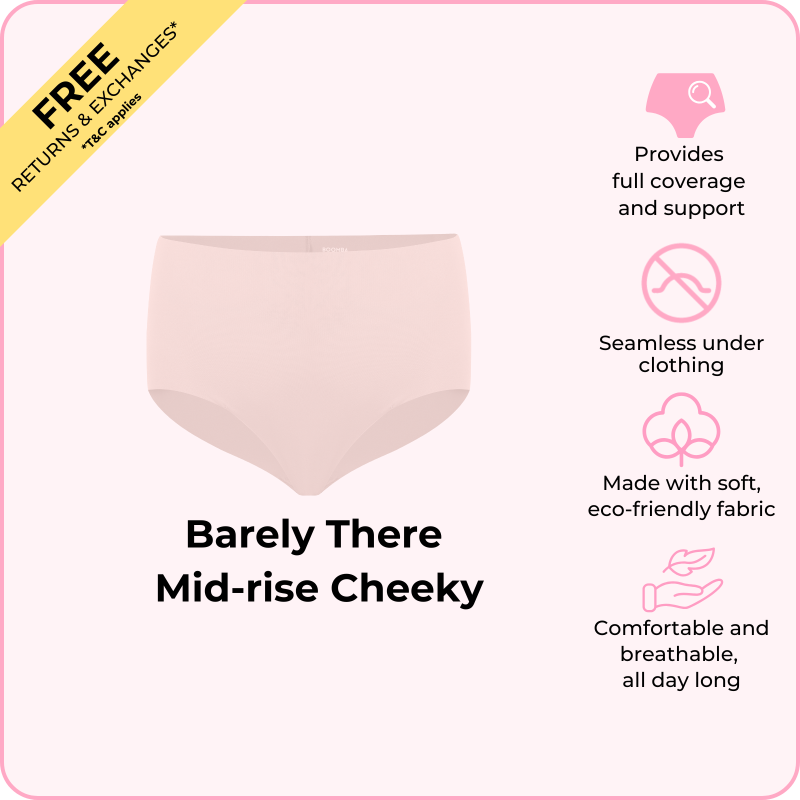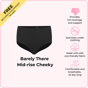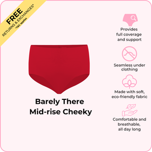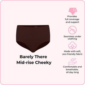 The BOOMBA Barely There Mid-Rise Cheeky is like a hug for your hips—comfy, cute, and totally invisible! With ultra-soft, seamless fabric, it feels like you’re wearing nothing (but in the best way). The mid-rise cut and cheeky back give you a flattering shape, making it your new go-to for everything from Netflix binges to date nights. Slip into this cheeky little number and feel fab all day long!