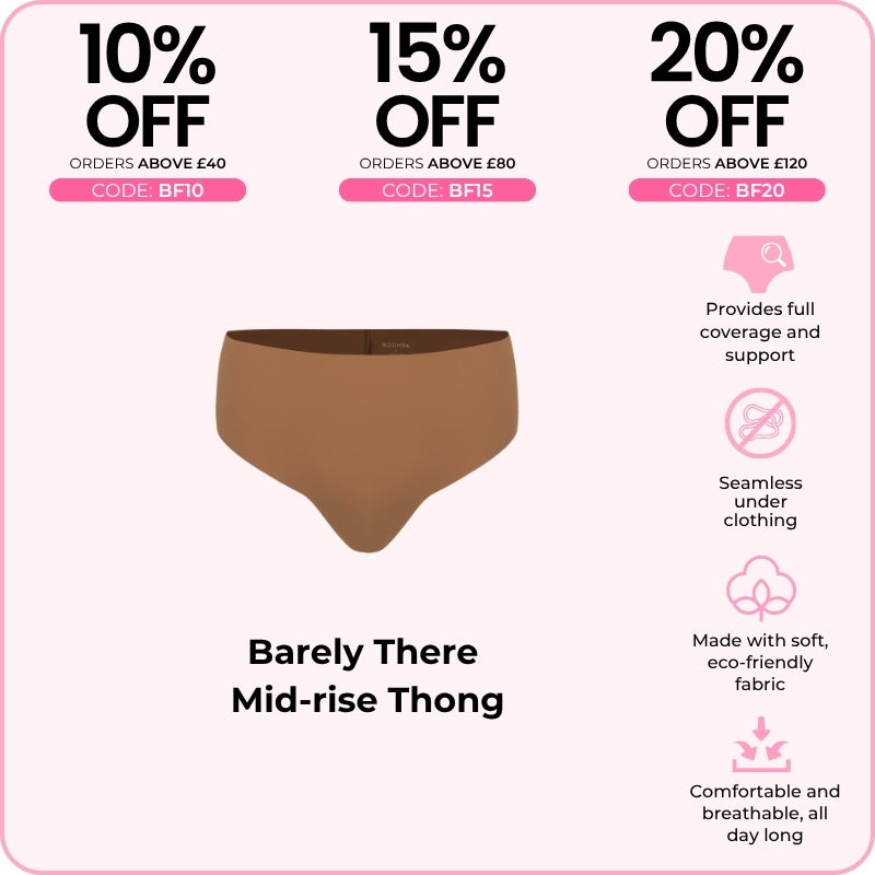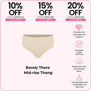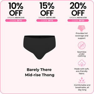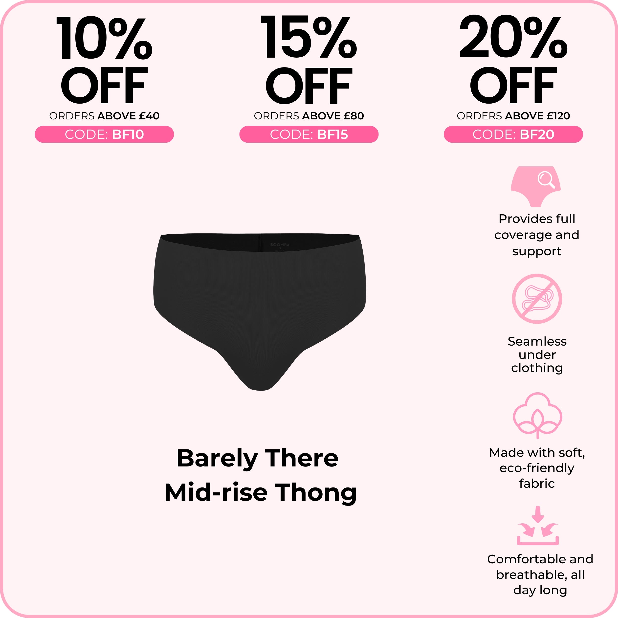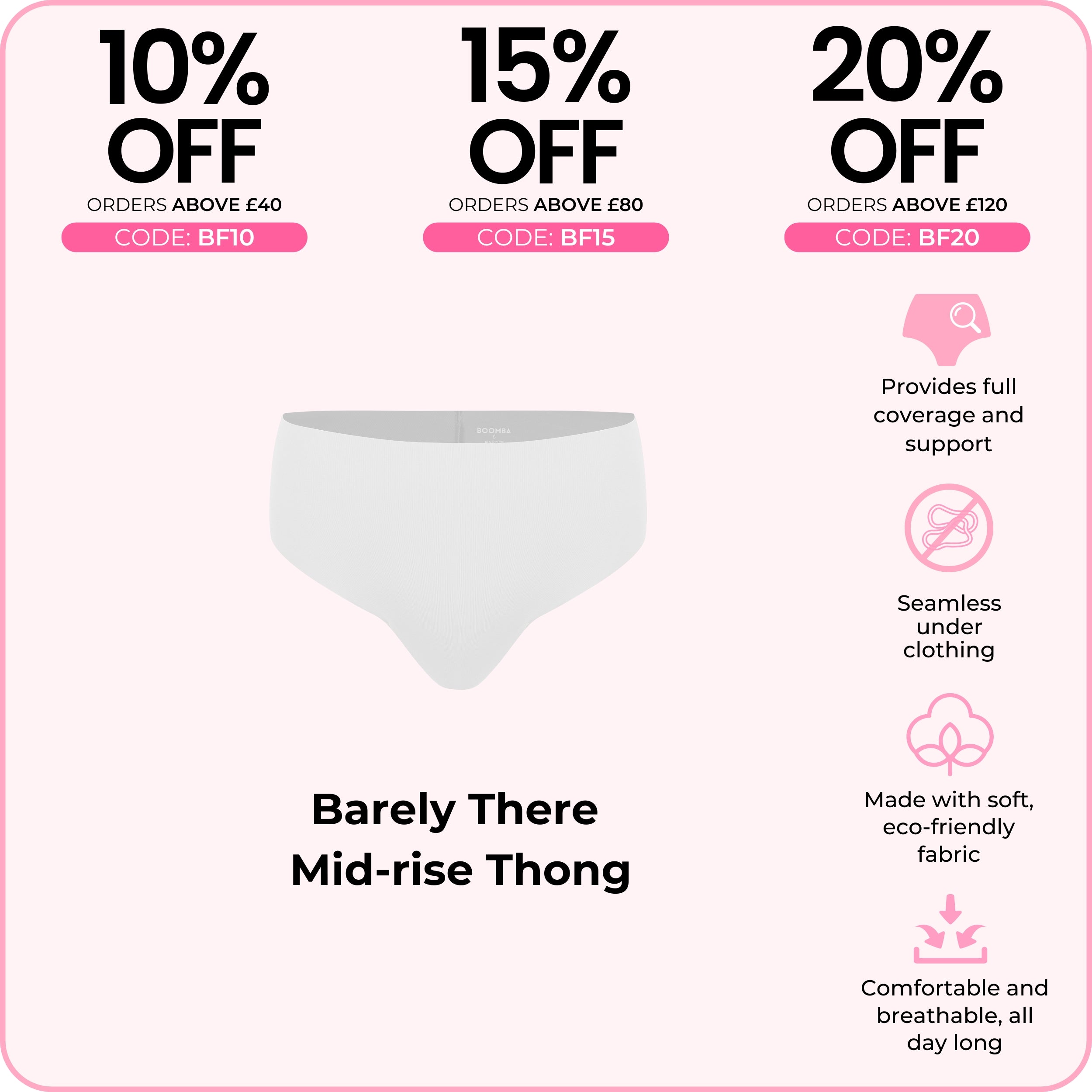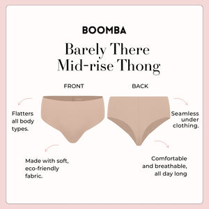 Introducing the BOOMBA Barely There Mid-Rise Thong – like a second skin, but way cuter! Made from ultra-soft, seamless fabric, this little beauty gives you all-day comfort and stays invisible under clothes. The mid-rise fit offers the perfect balance of coverage and style, making it ideal for everyday wear. It’s the little secret you’ll never want to take off!