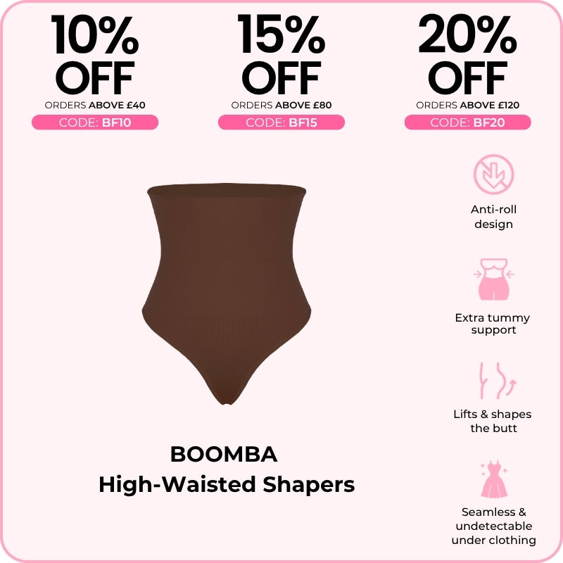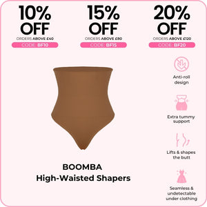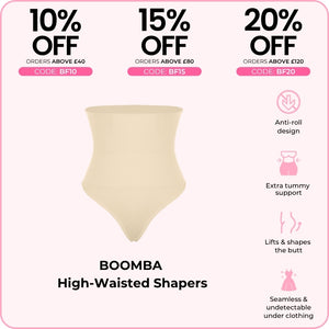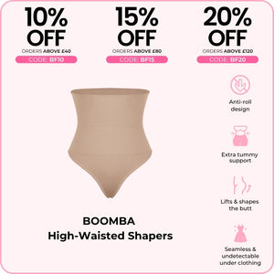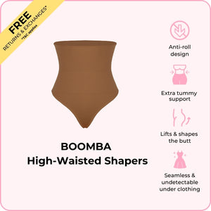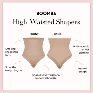 Experience a sleek, sculpted silhouette with BOOMBA's High-Waisted Shapers. Crafted to contour your waist and enhance your figure, these breathable thong shapers offer targeted support while remaining undetectable under your clothing. Featuring BOOMBA’s no-roll waistband, this shaper stays securely in place for all-day comfort and a flawless silhouette.