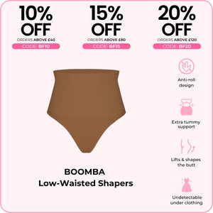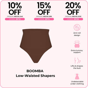 Sculpt, contour, and lift with BOOMBA’s Low-Waisted Shapers. Crafted from thick, premium materials to provide ample coverage while expertly sucking in the belly, giving you a sleek silhouette you can feel confident in.