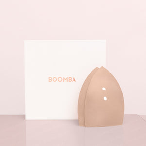 Preparation is key! Before using BOOMBA inserts, please ensure breasts are clean and dry. Any makeup, oil, lotion or other body products may hinder the inserts from sticking onto your skin properly. Put the clothing item on your body first, then place inserts onto the clothing item, then scoop breasts and stick onto the insert to secure.