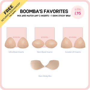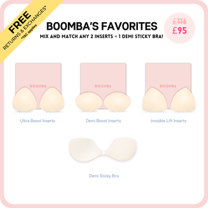 This bundle contains 2 of our best-selling inserts of your choice and the BOOMBA Demi Sticky Bra. Hand-picked as our personal faves, this bundle includes all the essentials you need to look great and feel great on any occasion.