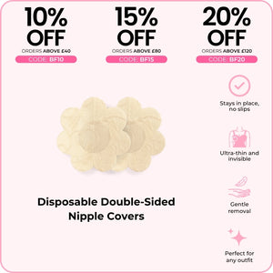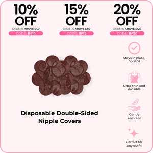World’s first disposable double-sided nipple covers, one side designed to stick onto your garment and the other on you. Keeps clothing in place while remaining undetectable under your clothing.