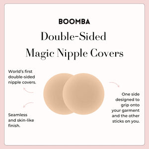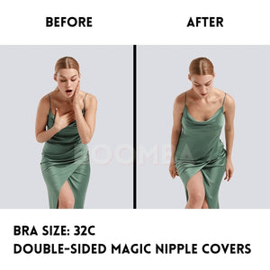 World’s first double-sided magic nipple covers, one side designed to grip onto your garment and the other sticks on you. Keeps clothing in place while remaining undetectable under your clothing.