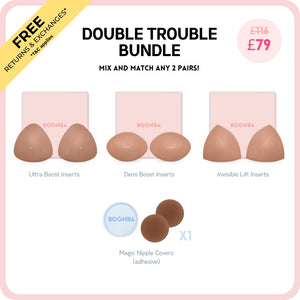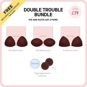This bundle includes your two favorite inserts and our best-selling Magic Nipple Covers to help take your outfit to the next level
