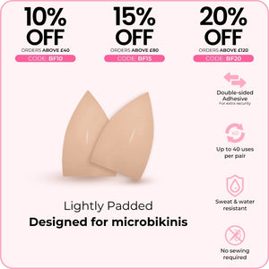 Designed specifically to stay hidden under micro bikinis, these lightly padded inserts are perfect for providing lift and preventing nip-slips.