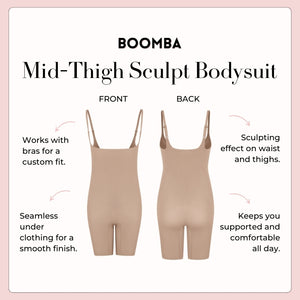 Meet the BOOMBA Mid-Thigh Sculpt Bodysuit—the secret to looking fabulous without breaking a sweat! With targeted shaping, an open-bust design, and mid-thigh coverage, it smooths you out and lifts you up. Made from soft, breathable fabric, it’s comfy enough for all-day wear and stays completely seamless under any outfit. Whether you're dressing up for a big event or just want to feel amazing every day, this bodysuit’s got your back—literally!