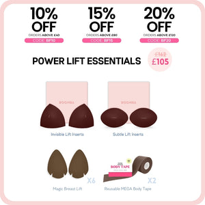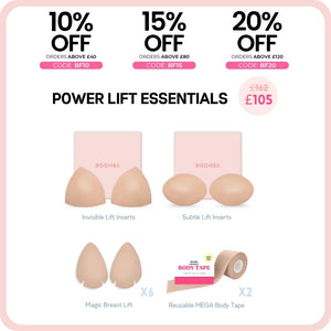 Designed to keep your curves looking naturally lifted and smooth without the hassle of wires or straps. Perfect for plunging necklines, backless outfits, and even swimwear! This bundle will keep you feeling supported and looking fabulous all day long.