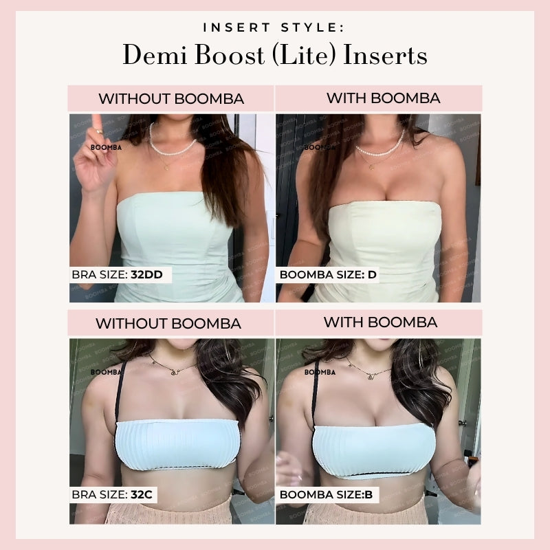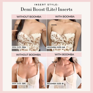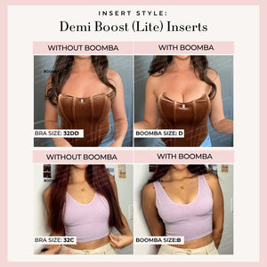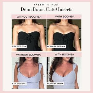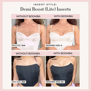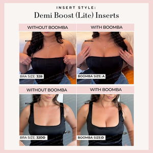 Demi Boost: The shortened version of our Ultra Boosts. Lifts and adds 2 cup sizes, perfect for sweetheart necklines.